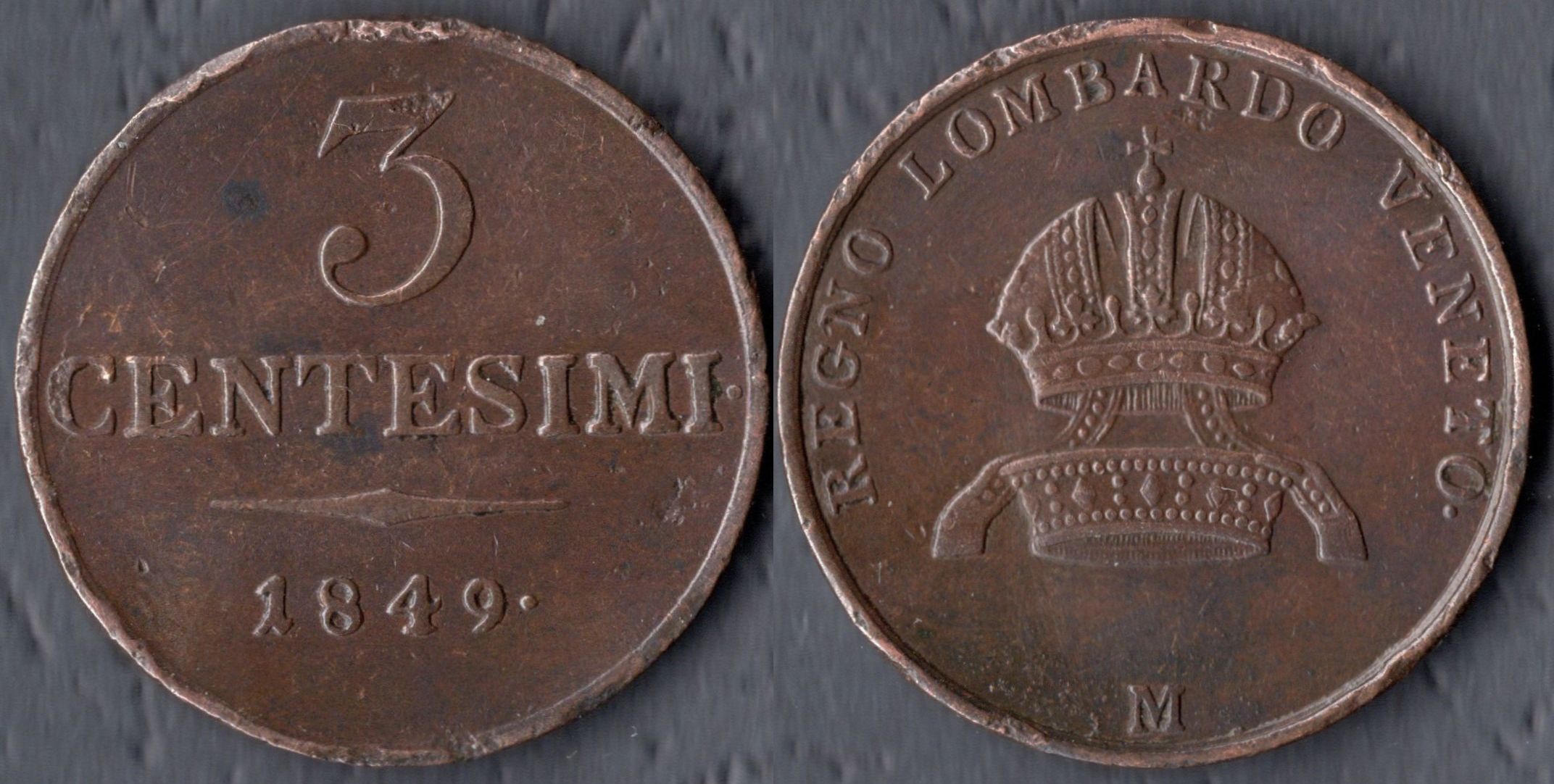 C# 26, 3 чентезими 1849, медь, годы выпуска 1849-1852, м.д. Милан